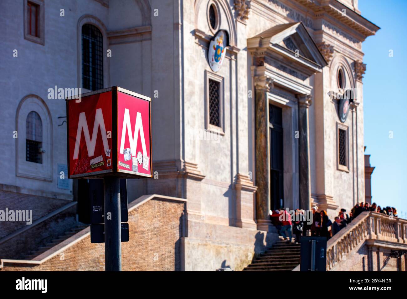 The Metro Sign For Spagna Metro Station In Rome Close To The Spanish Steps And The Church Of Trinita Dei Monti In The Centre Of Rome Stock Photo Alamy